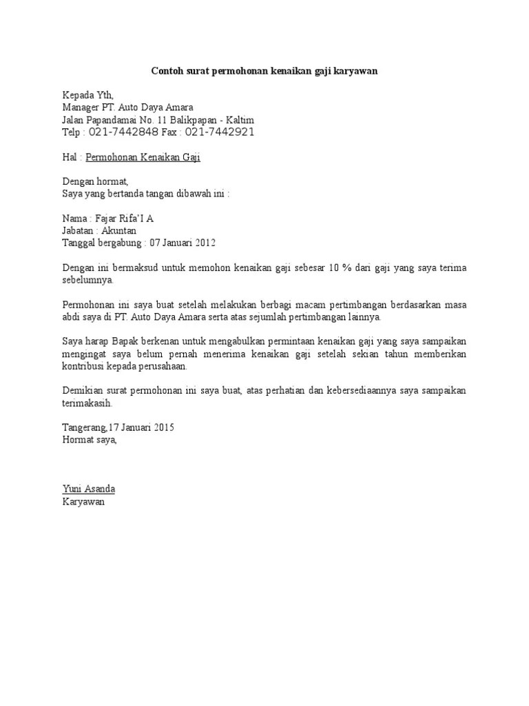 Alasan gaji karyawan swasta pns tni polri akan dipotong 25 mulai januari 2021 jokowi setuju. Perhatian dan kebersediaannya saya ucapkan terima kasih. Contoh format surat permohonan kenaikan gaji bagi karyawan secara umum terbaru dan update dari iddev.website/ Dengan ini bermaksud untuk memohon kenaikan gaji sebesar 10 % dari . Antara karyawan dengan perusahaan dalam surat perjanjian kerja. Langkah berikutnya yang bisa anda lakukan adalah membuat surat permohonan resmi untuk perusahaan tempat . Jakarta, 12 april 2016 hormat saya, herman adan karyawan contoh surat permohonan kenaikan gaji karyawan kepada yth, manager pt.